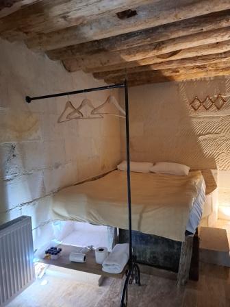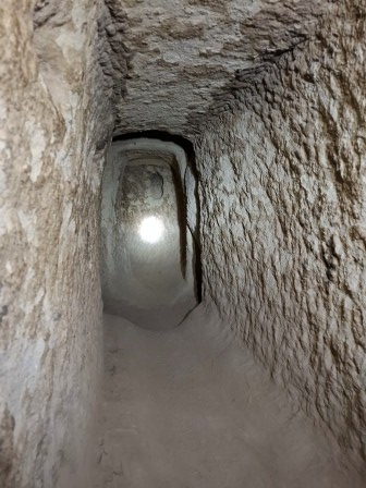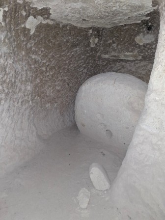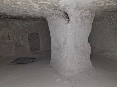 Din sala principală se urcă spre o încăpere întunecoasă, unde se păstrează o veche ușă rotundă de piatră, folosită odinioară pentru a bloca intrarea în caz de asediu. Aici ai nevoie de lanterna oferită de paznic, pentru că lumina naturală lipsește. Scările sunt abrupte, iar culoarele foarte înguste, ceea ce face experiența și mai autentică.