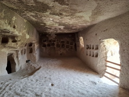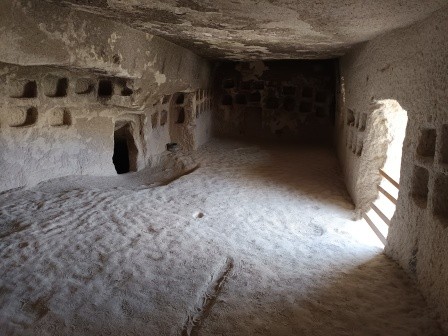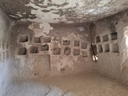 Complexul include încăperi funerare, o biserică și spații utilitare – bucătărie, presă de vin, stup, cisternă și porumbar (pentru colectarea gunoiului de porumbei, folosit ca îngrășământ).