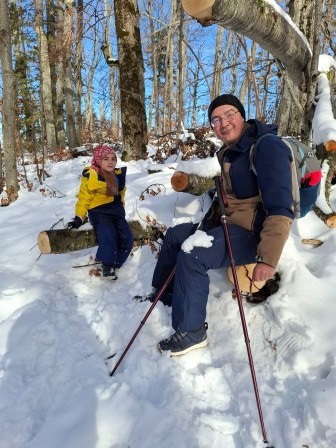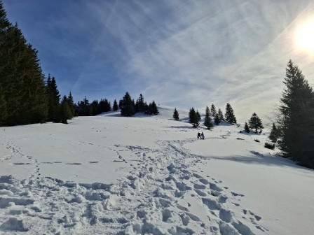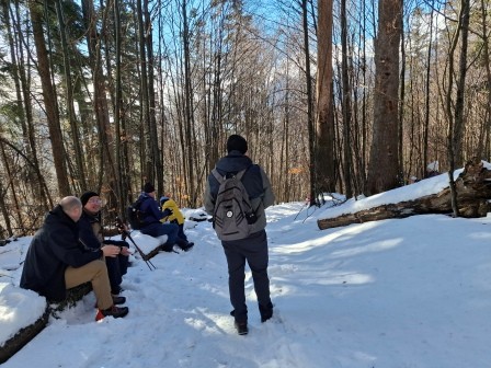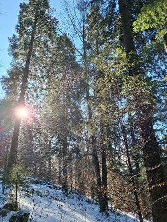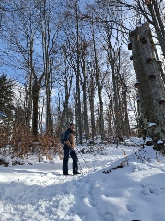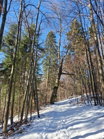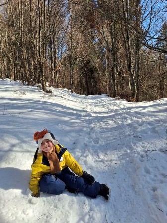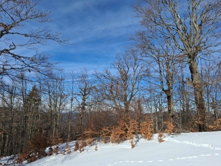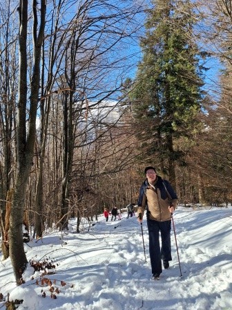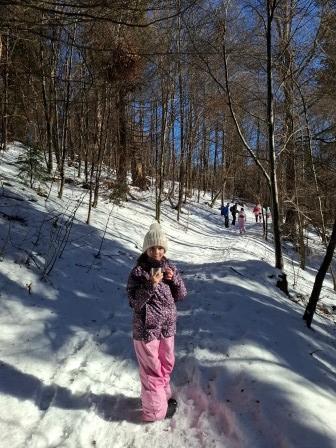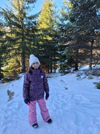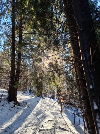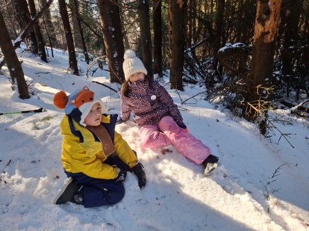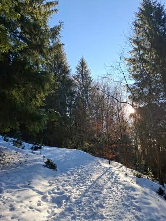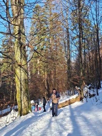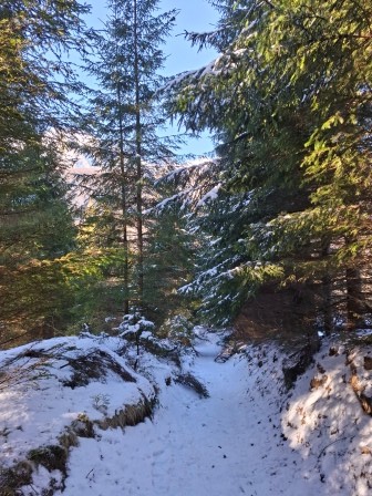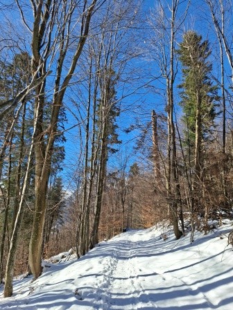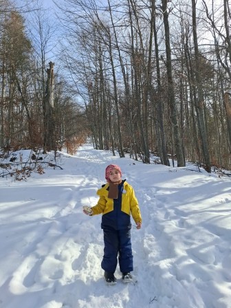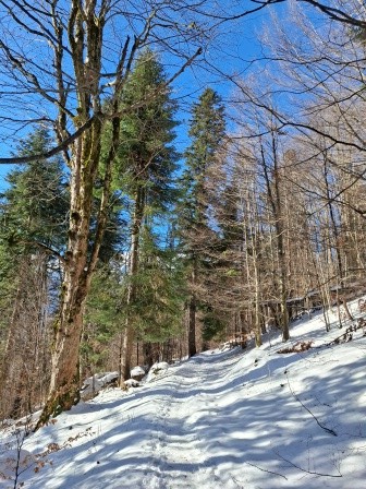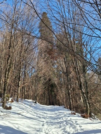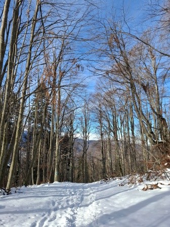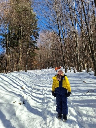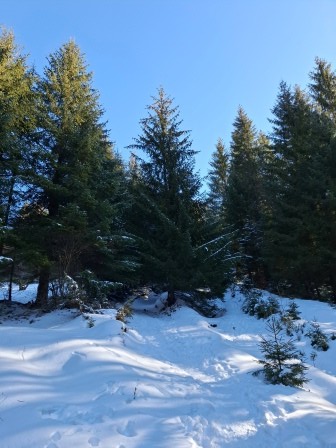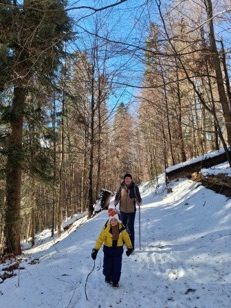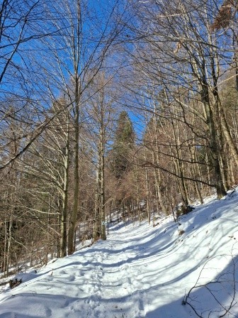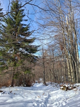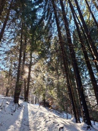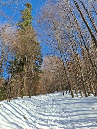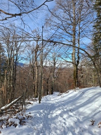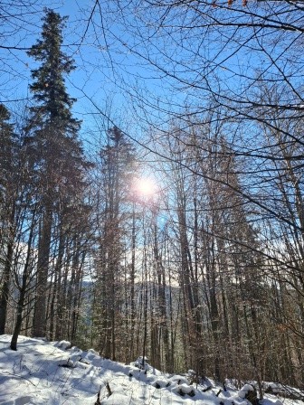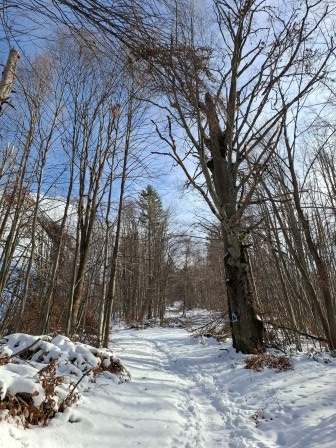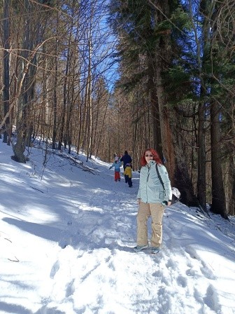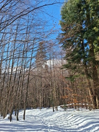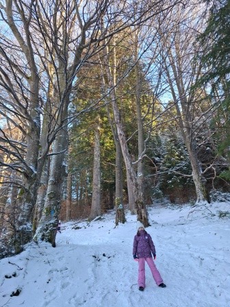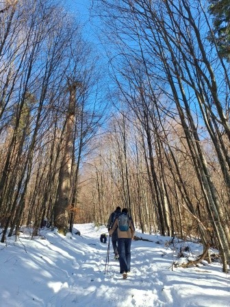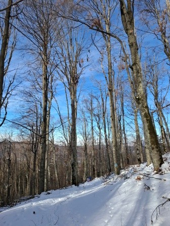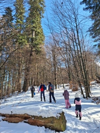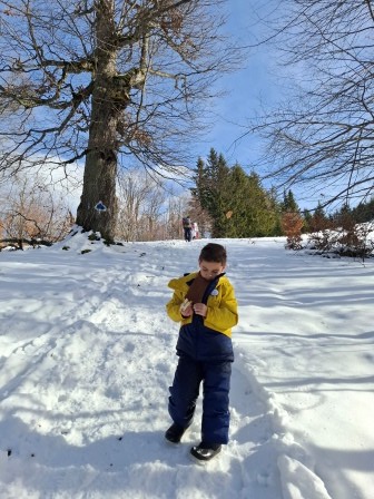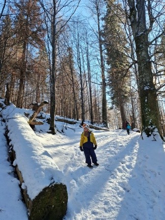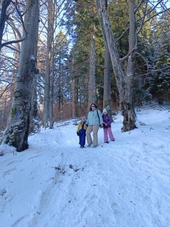 Ne continuăm urcarea prin pădure cu pauze de bulgărit și jucat prin zăpadă 🤍🤍🤍.