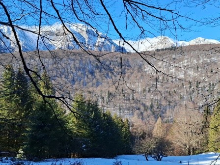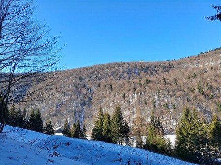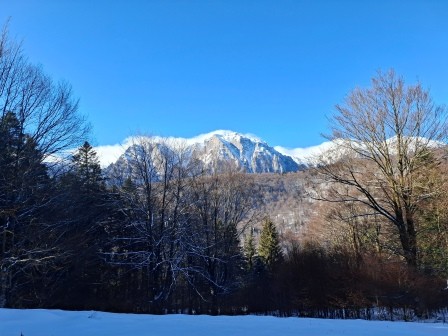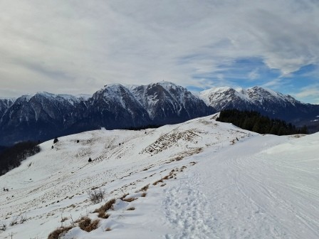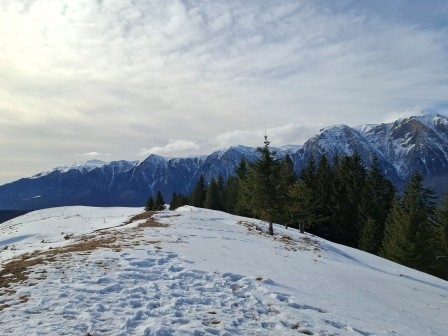 După aproximativ 2 h și 45 min de la intrarea pe traseu, ieșim din pădure la cota 1440 m, pe culmea Sorica. Spre partea dreaptă observăm minunatele peisaje oferite de Caraiman și Coștila.