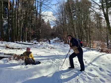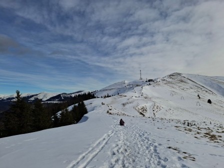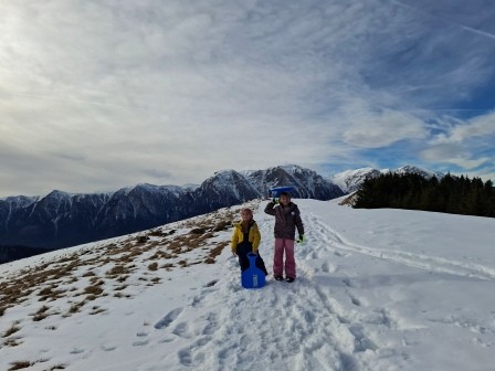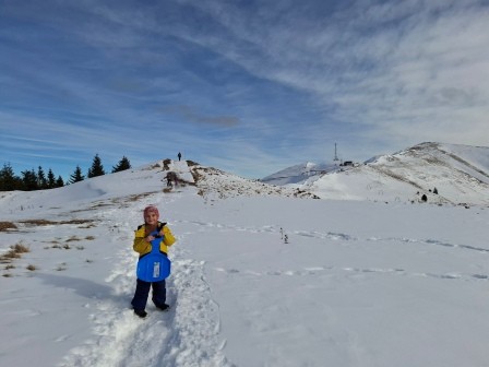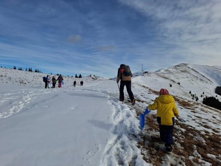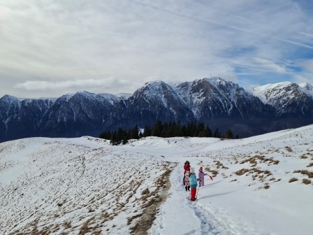 Ne continuăm drumeția pe culmea Sorica pentru aproximativ 300 m, până când poteca virează spre stânga. Aici facem o pauză mai lungă, oferindu-le copiilor ocazia să se bucure de câteva ture cu fărașele. După distracția copiilor, ne continuăm traseul spre cabană mergând pe marginea pârtiei Sorica pentru aproximativ 750 m.