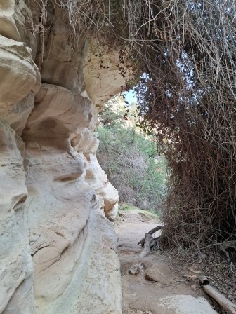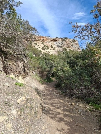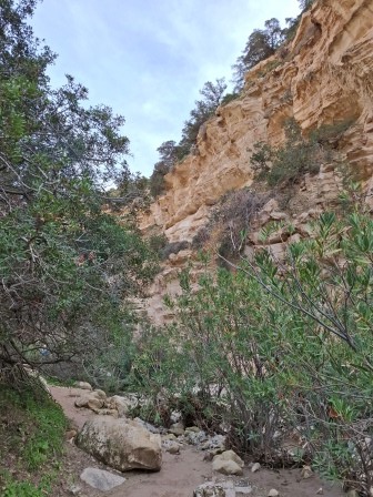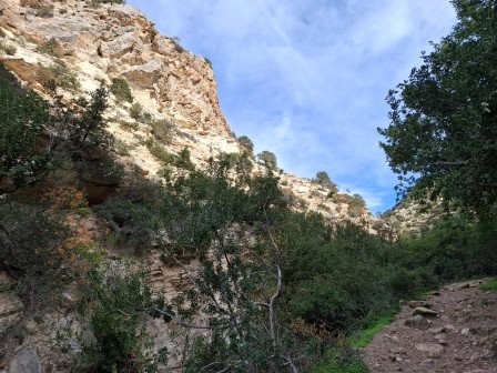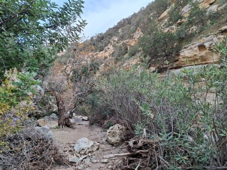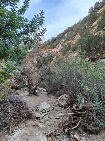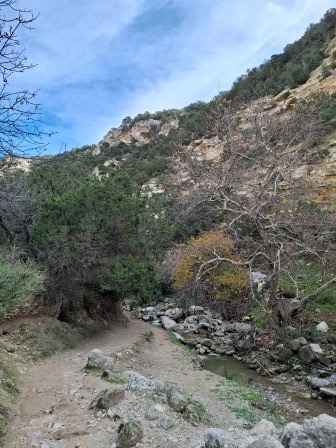 Mai departe, traseul se strâmtează, iar poteca urcă ușor înainte de a coborî treptat în albia râului, conducând spre intrarea în canion.