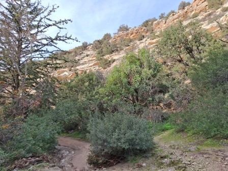 Versanții calcaroși stâncoși cu vegetație casmofitică (habitat tip 8210) ai canionului găzduiesc mici pete de Adiantetea (habitat tip CY03), care se întâlnesc exclusiv în zonele umede de pe pereți și pe marginile cheilor.