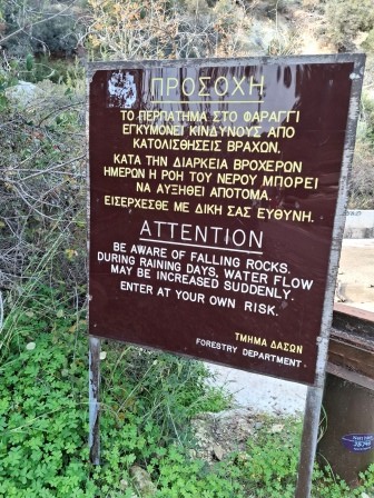 După aproximativ 100 m ajungem la o barieră unde suntem avertizați asupra faptului că intrarea în chei este periculoasă și interzisă (ups).