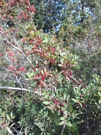 Alte specii de plante întâlnite sunt Pistacia lentiscus, Juniperus phoenicea (ienupărul fenician), Ceratonia siliqua (roșcovanul), Nerium oleander (leandrul), Pistacia terebinthus, Cupressus sempervirens var. horizontalis, Olea europaea (măslinul european), Styrax officinalis, Calycotome villosa etc.