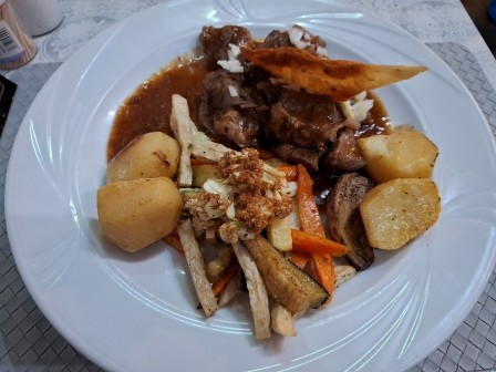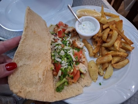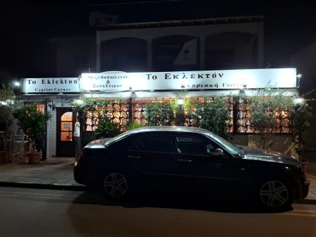 La aproximativ două minute de mers pe jos se găsește și un restaurant cu specific cipriot cu mâncare foarte bună, To Eklekton Cypriot Corner. Am luat cina de 2 ori în această locație, iar o masă cu 3-4 feluri de mâncare și cu băuturi ne-a costat în jur de 70-75 Euro cu tot cu bacșiș. La acest restaurant am primit și un mic desert din partea casei constând în baklava, iaurt cu nuci și miere, struguri, banane și portocale.